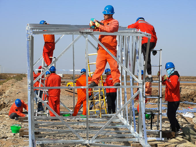“他們這群小青年能把這36米高的鐵塔組裝起來?”業(yè)主在工地上充滿質(zhì)疑的說。灌云益風(fēng)風(fēng)電35KV集電線路項(xiàng)目是該公司首次自主安裝的工程項(xiàng)目,涉及面廣、任務(wù)重、工期短。這36米的鐵塔,別說這群90后的11名青年突擊隊(duì)員,就是所里的老師傅都不曾干過。面對質(zhì)疑,他們沒有理會,而是繼續(xù)埋頭苦干、一往無前。他們在開工前積極響應(yīng)號召,迅速集結(jié)、重裝上陣,認(rèn)真制定施工管理方案,合理安排施工工期,指定項(xiàng)目協(xié)調(diào)人,遇到問題,現(xiàn)場提出、現(xiàn)場協(xié)調(diào)、現(xiàn)場解決,就部分突出問題,重點(diǎn)分析、重點(diǎn)考慮、重點(diǎn)解決,同時通過早會和日報(bào)讓大家第一時間掌握到工期進(jìn)度,根據(jù)進(jìn)度合理安排工作,最大程度的提高了工程建設(shè)施工工作效率。當(dāng)天,11名青年突擊隊(duì)隊(duì)員頂著凜冽的寒風(fēng),在隊(duì)長孫迎照的指揮下硬是在短短的幾個小時內(nèi)將B14號鐵塔穩(wěn)穩(wěn)豎起,業(yè)主為此豎起了大拇指。